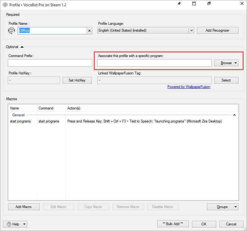 When the Profile is set manually to my "General" (Generic) profile and I speak my command, The command is recognized, but nothing happens (in this case a simple text to speech phrase). It is recognized by voicebot, just the TTS doesn't fire. If I edit the profile/marco and perform a test using the button provided, the TTS works just fine.