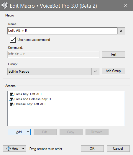 We've just released VoiceBot 3.0 Beta 2, and this is now possible to do. It's a little more involved than sending a regular key combination, so I've attached a screenshot example for reference. The left/right modifiers are selected using the drop-down arrow next to the text box when adding a "Press Key" action.