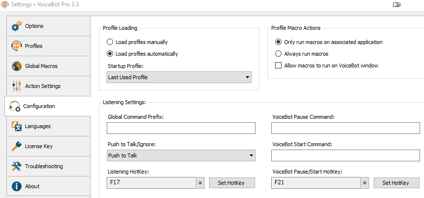 it is possible that voicebot is just listening when the push-to-talk hotkey is pressed? At the moment it seems so that voicebot just ignores commands but listen all the time.