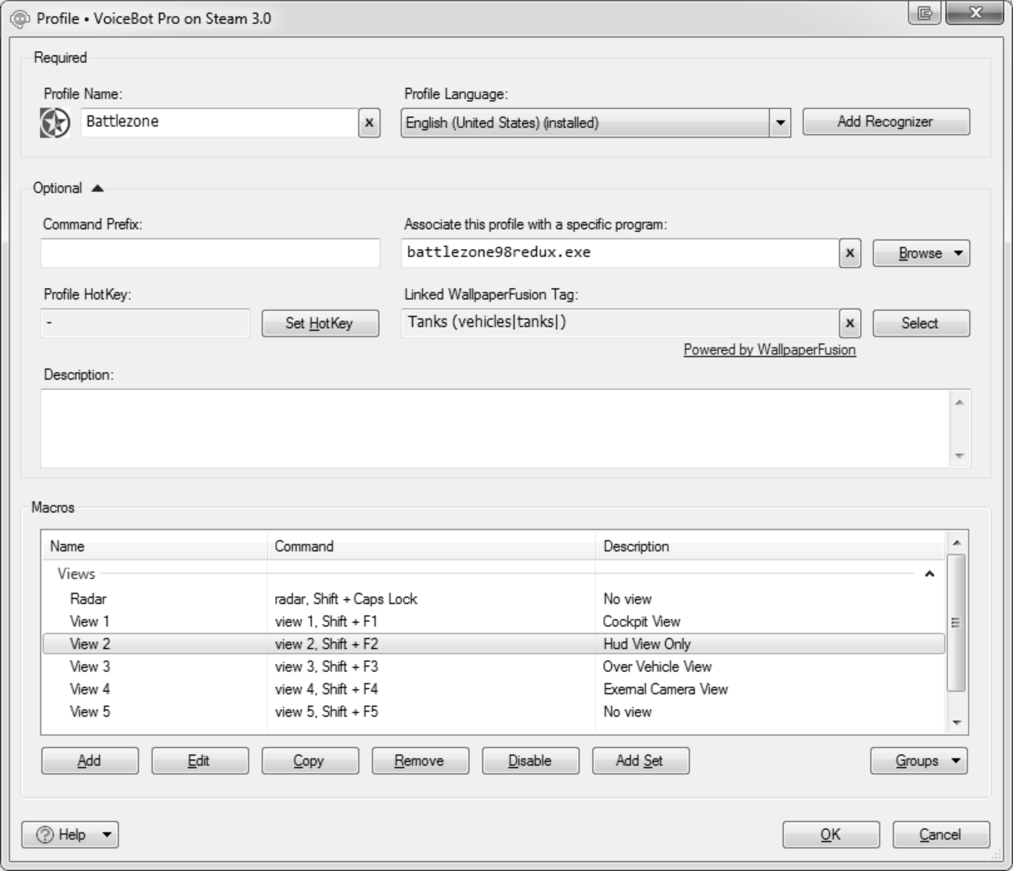 Hi, I am new to Voicebot, so I set up a quick profile just testing 5 different views for the Game Battlezone.